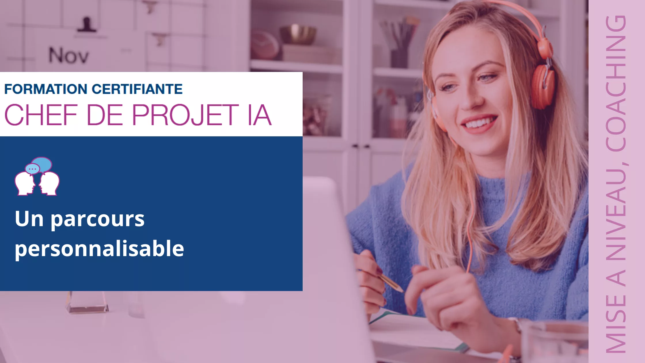 - Programme certifiant : blocs de compétences issus du titre RNCP n°39376 - Manager de projet en IA, de niveau 7